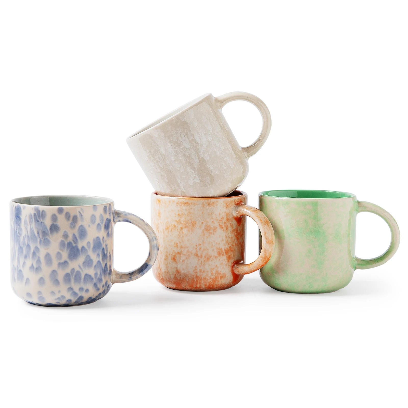 12 OZ Ceramic Coffee Mugs Set of 4 Modern Stoneware Coffee Mugs Set with Handle for Tea Latte Cappuccino Milk Cocoa