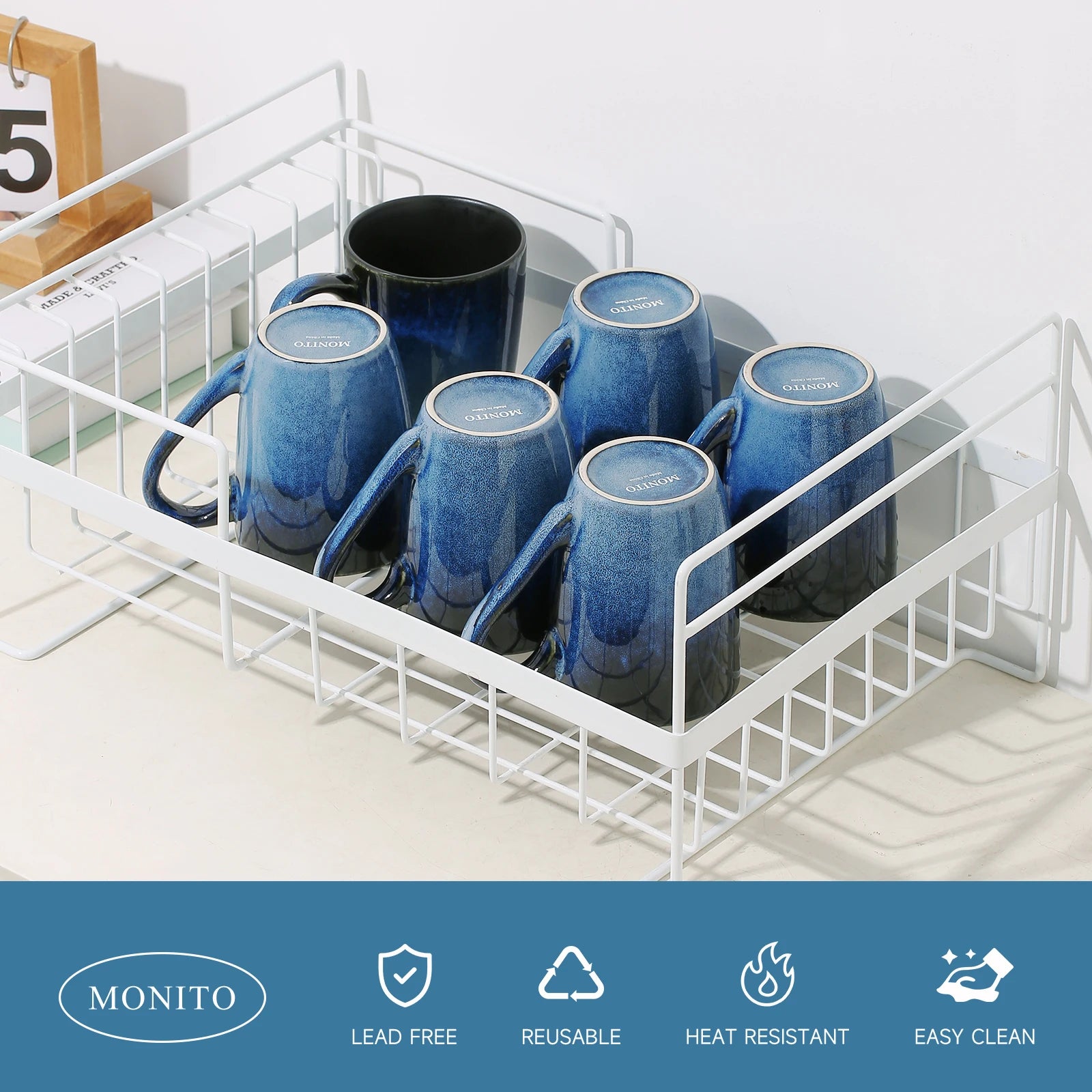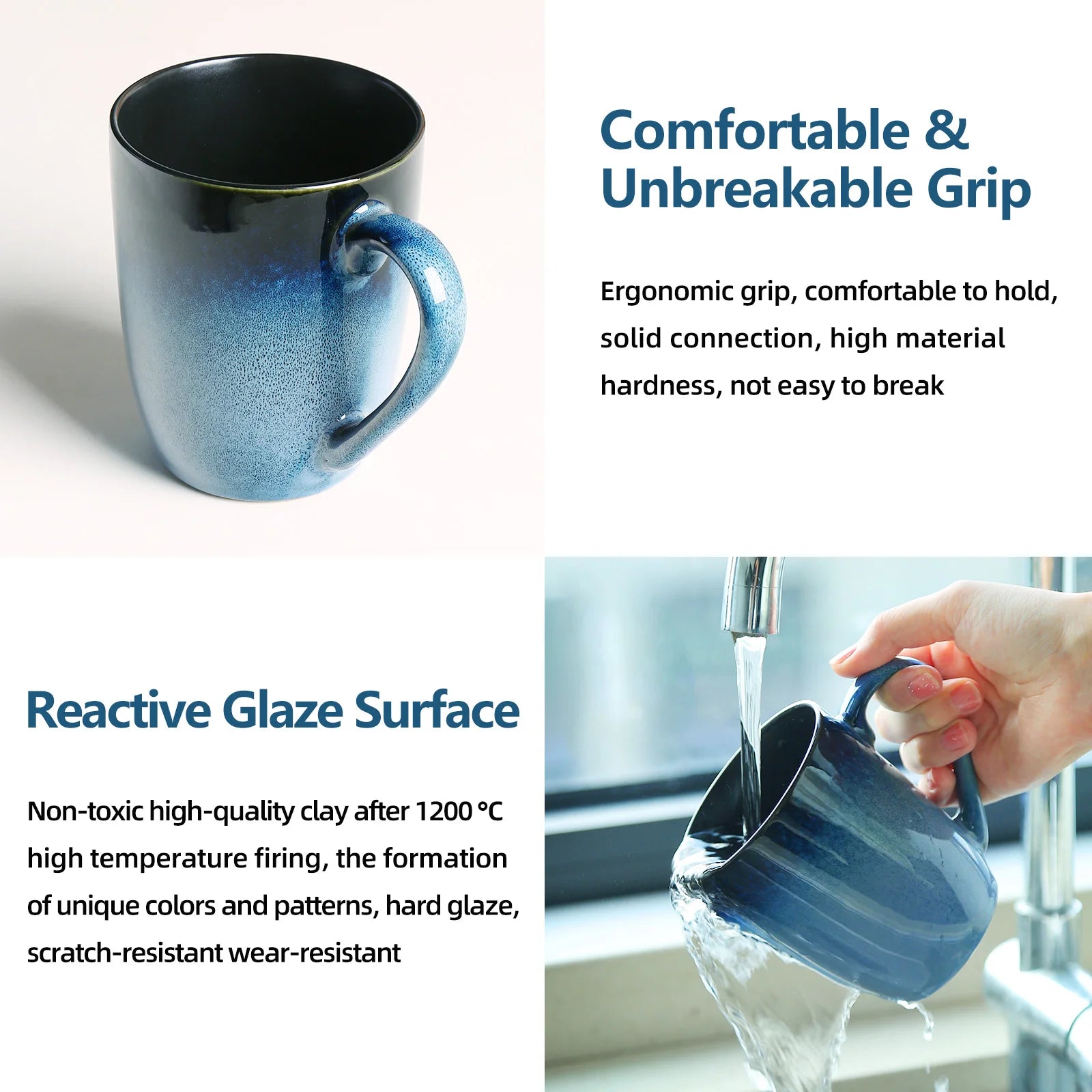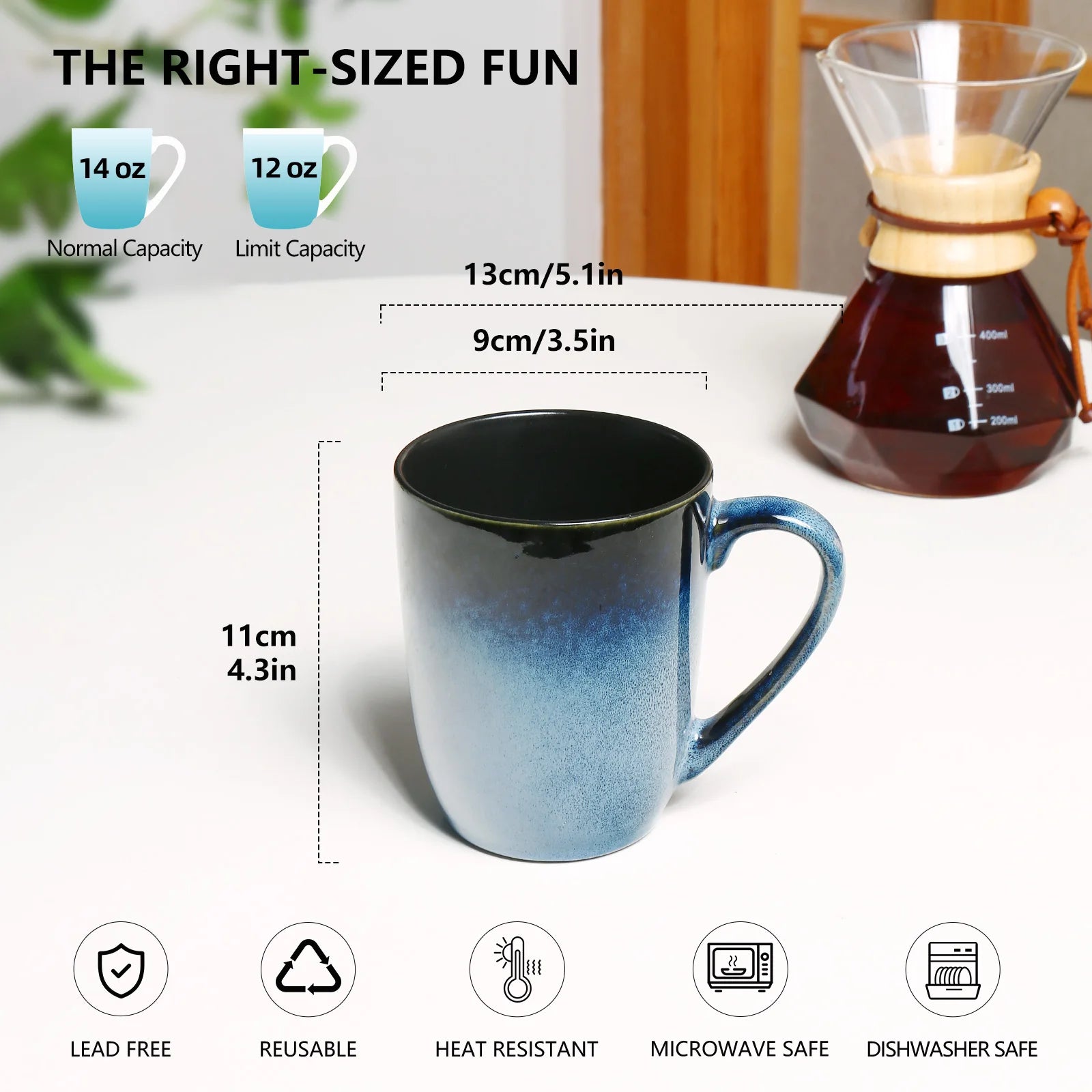 14 OZ Coffee Mugs Set of 6 Modern Large Ceramic Coffee Mugs Set with Handle for Tea Latte Milk Cocoa Ice-snow Blue