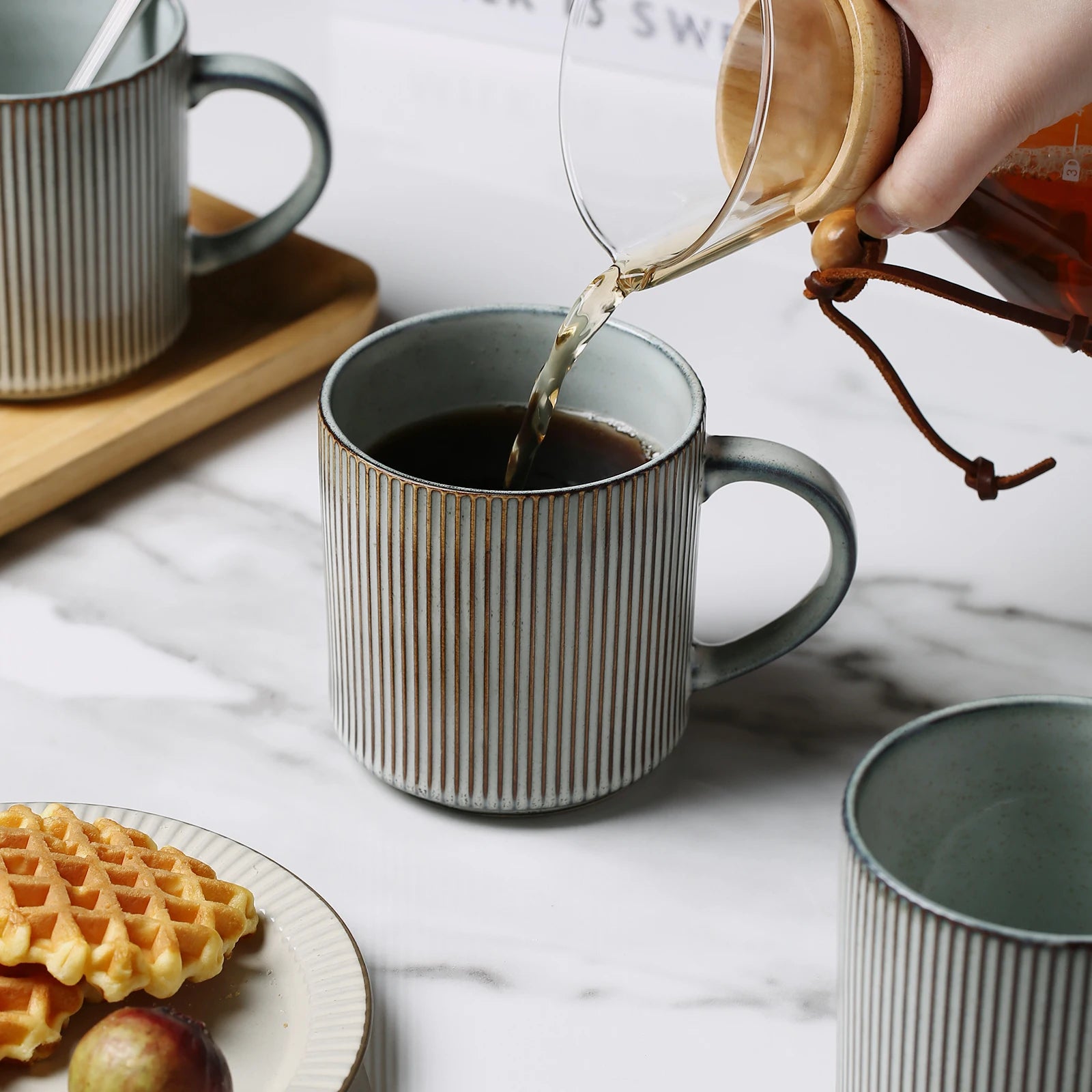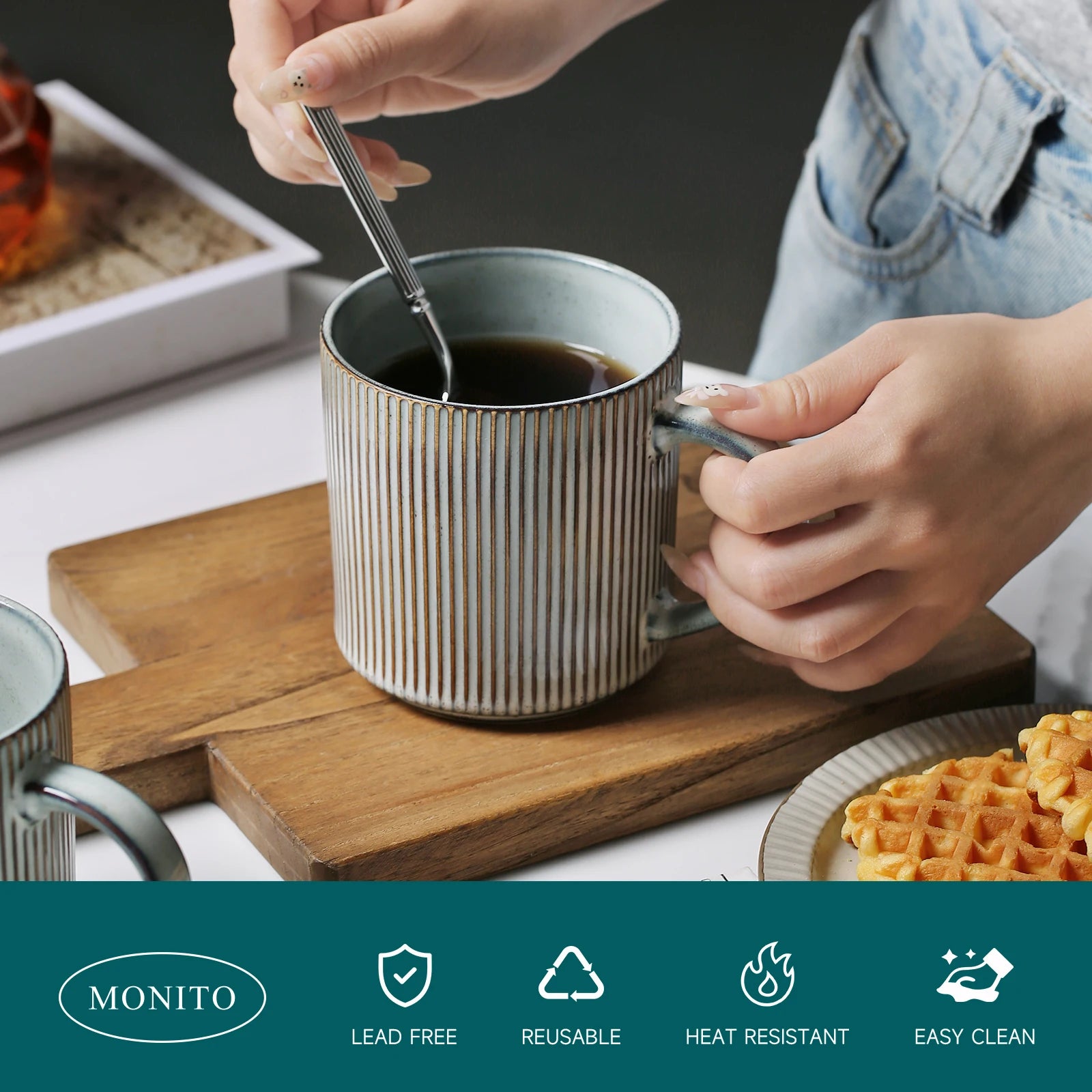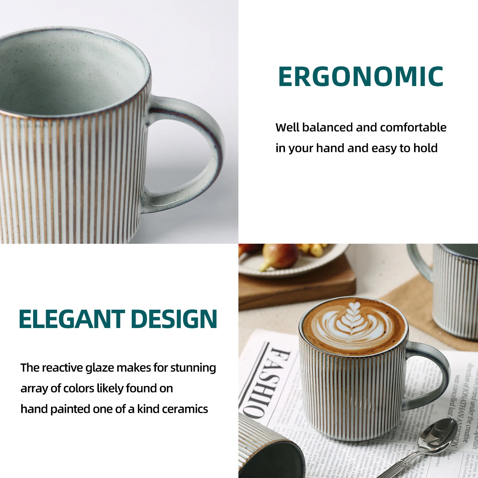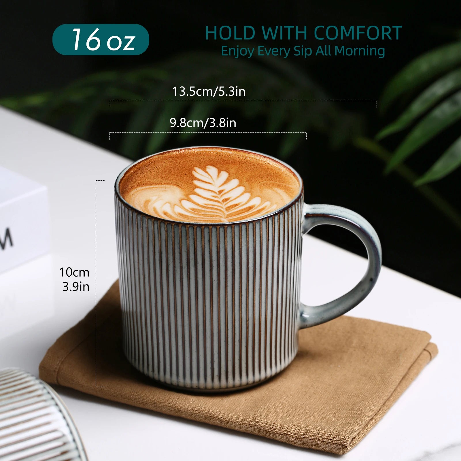 16Oz Ceramic Coffee Mugs Set of 4 Rustic Stoneware Coffee Cups Set with Large Handle for Latte Cocoa Tea Milk Smoky Blue