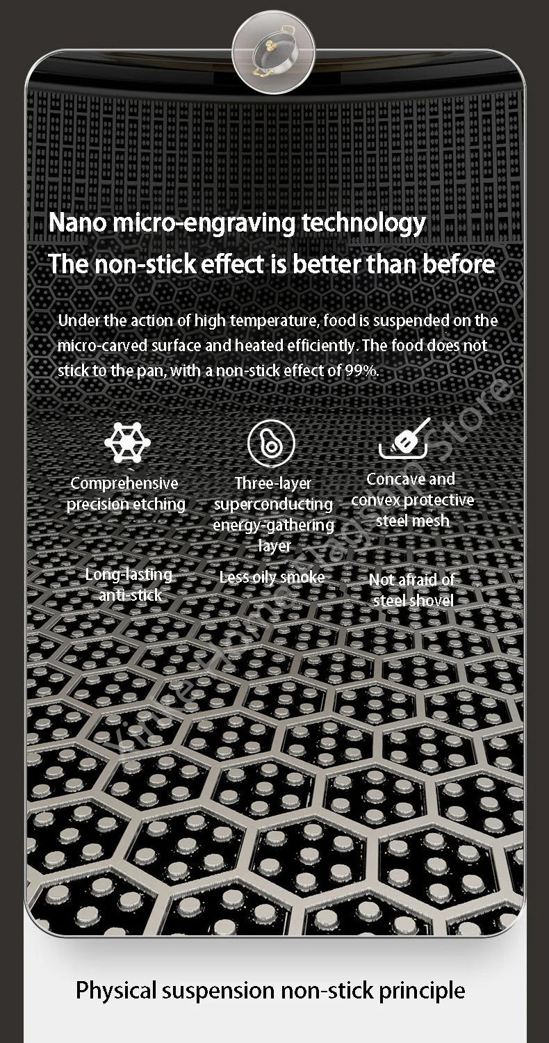 1. honeycomb design, suitable for frying/frying/searing/stir-frying/boiling and other cooking methods, frying and frying as you like, making cooking simpler.