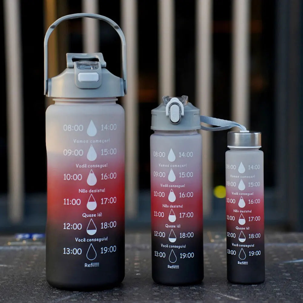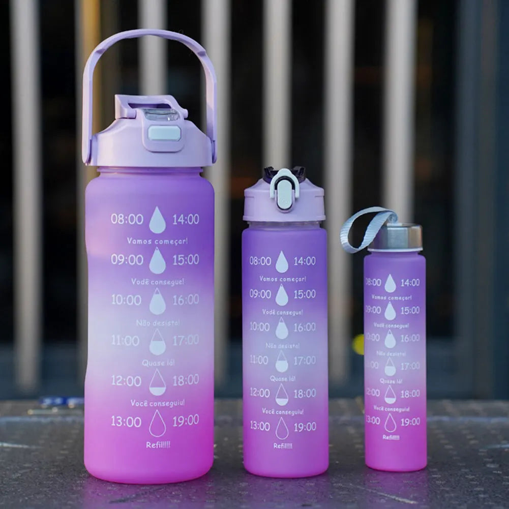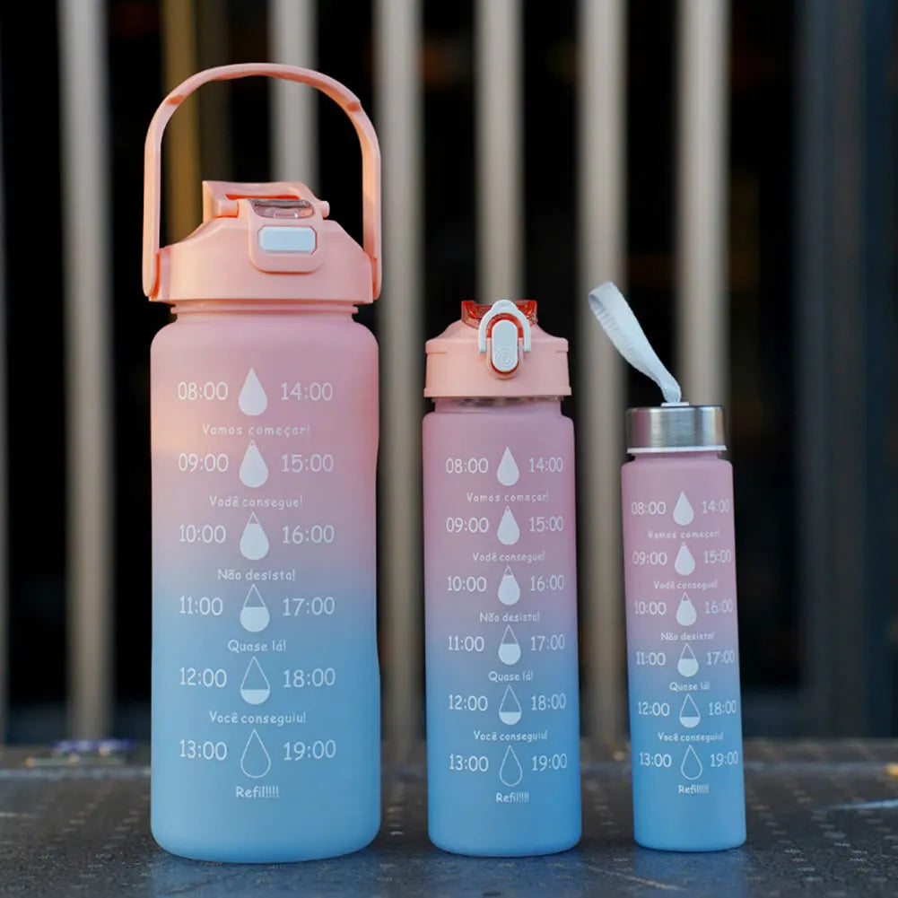 3PCS Leakproof Water Bottles with Times to Drink and Straw Motivational Drinking Sports Water Bottle for Fitness Gym Outdoor