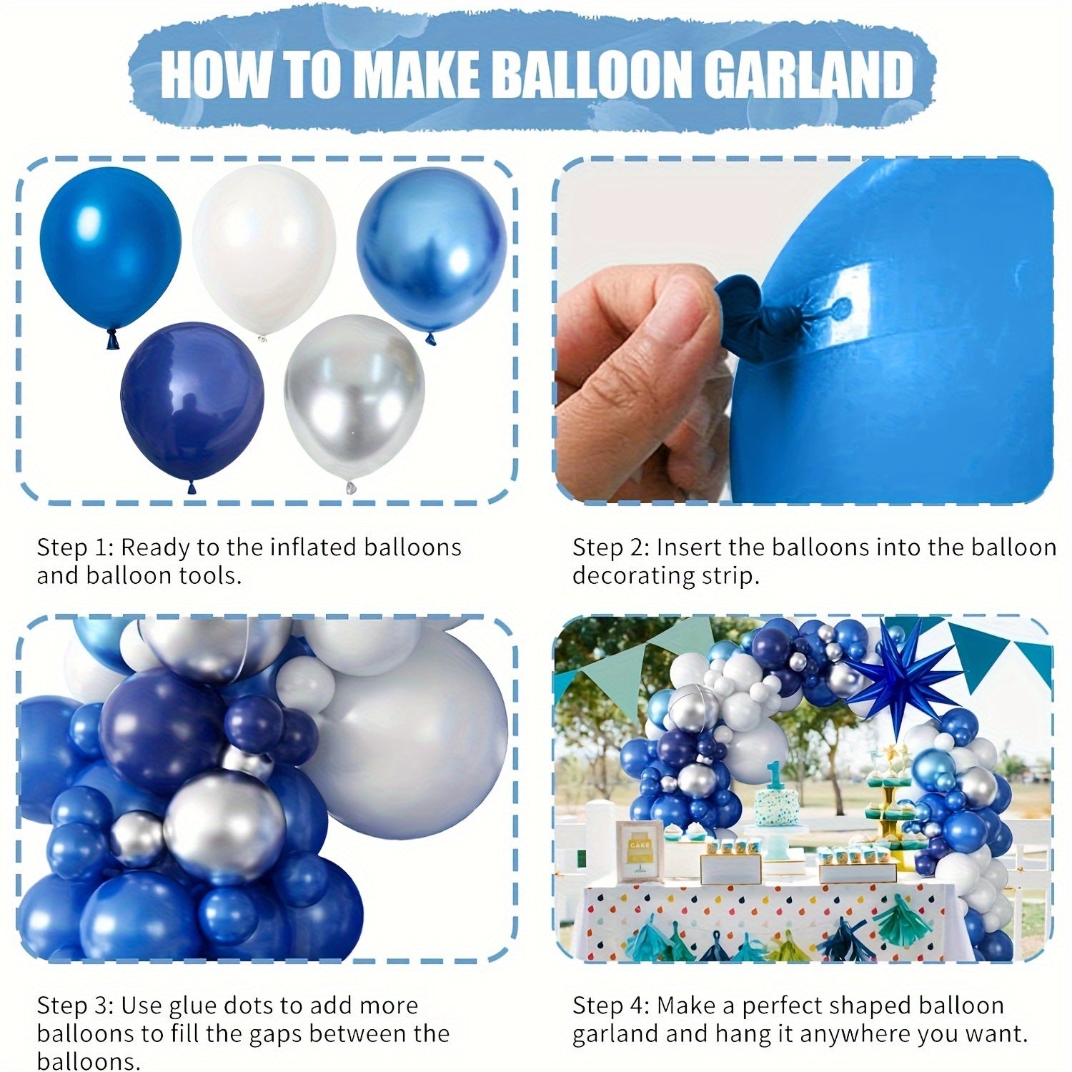 94pcs, Navy Blue White Metallic Slivery Balloon Set With Exploding Stars Aluminum Film Balloon Garland Arch Decoration, Graduation, Retirement, Wedding Party Decoration Brighten Up Your Party - Perfect For Birthday And Sweet