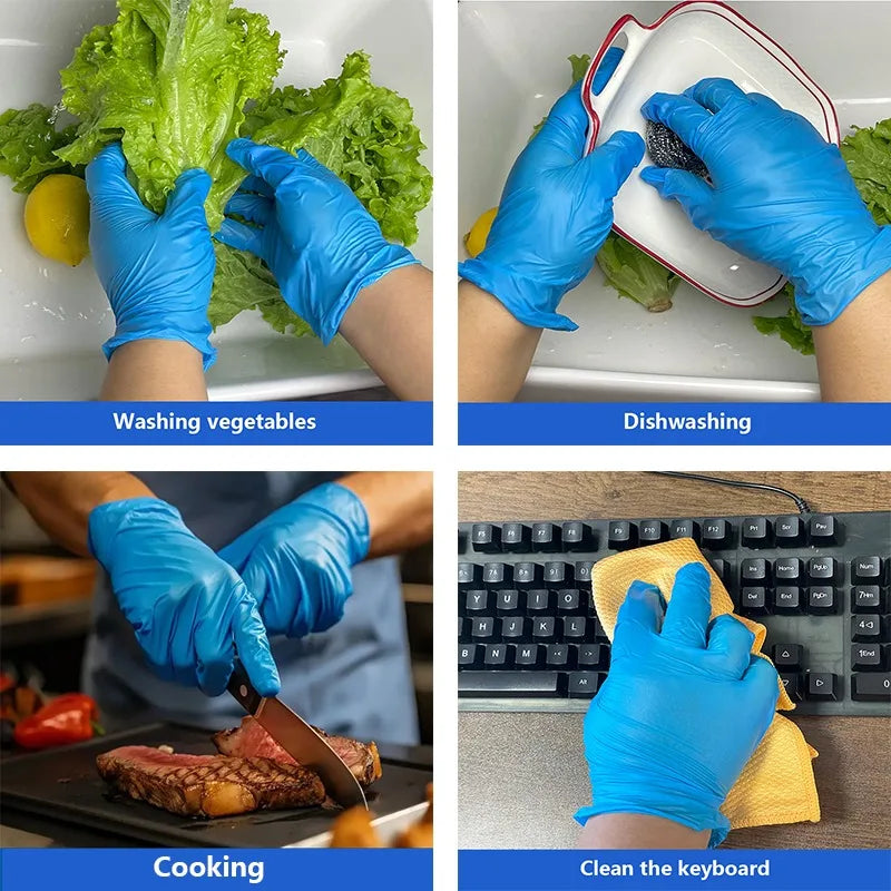 Disposable Blue Nitrile Gloves for Kitchen Cleaning Dishwashing Hairdressing Manicure Waterproof Household Tools Latex Free