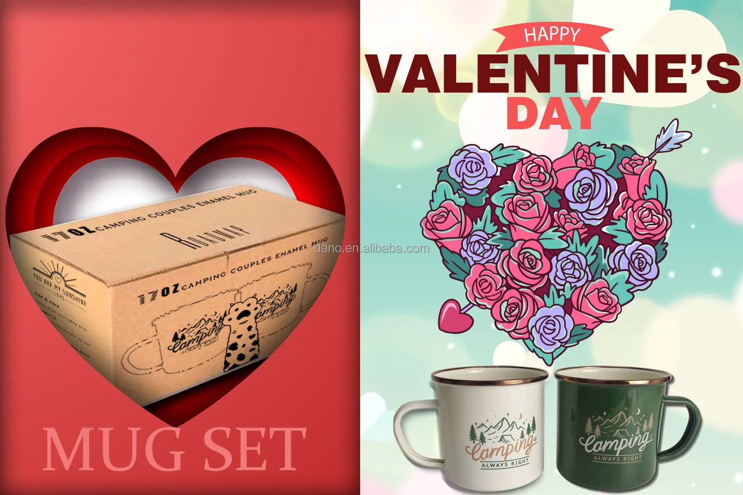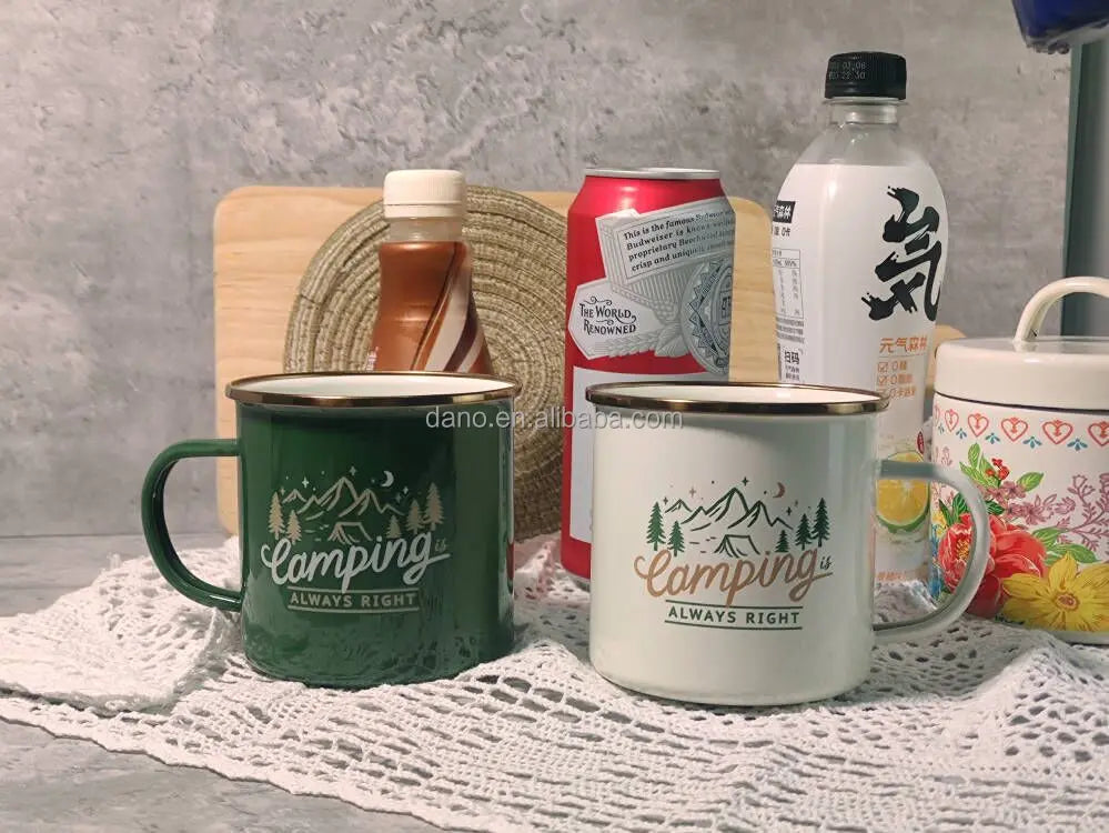 Enamel Coffee Mug Set of 2 - Camping Mugs for Coffee & Tea, 12oz Camping Coffee Cups with Lid (Camping Gifts/RV Essentials)