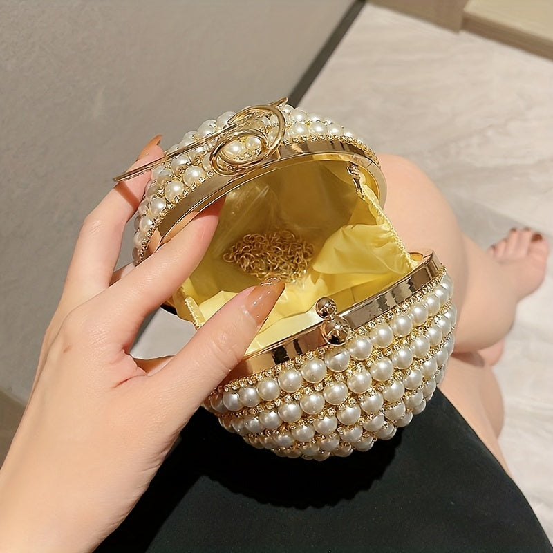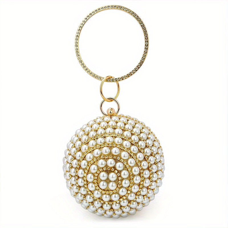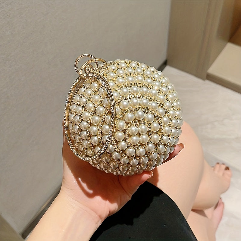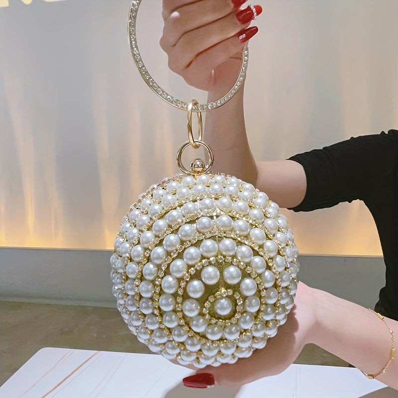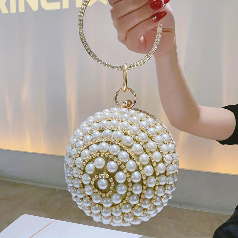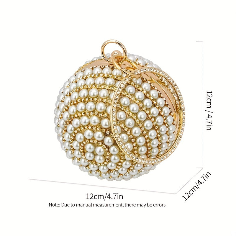 Glamorous Faux Pearl & Rhinestone Ball Clutch - Sparkling Evening Handbag for Weddings, Proms & Parties - Womens Fashion Purse