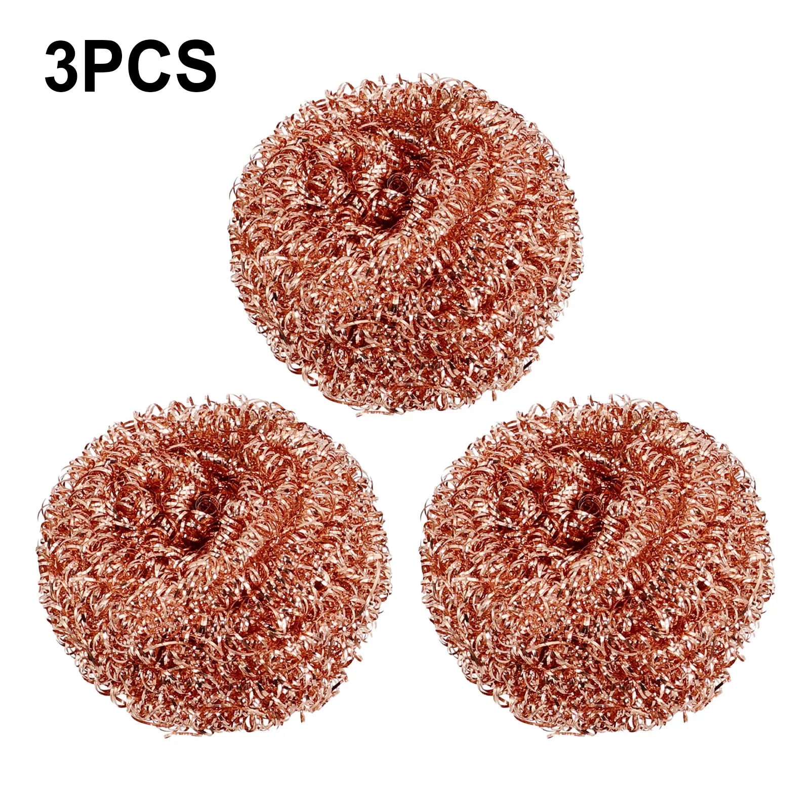 Kitchen Cleaning Tools 3x Copper Metal Wire Sponge Ball Iron Tip Nozzle Cleaner Slag Remover Tool Cooper Coated Scourers